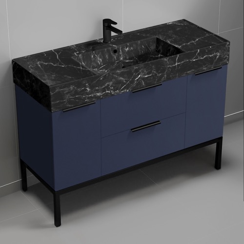 | Product Name: | Modern Bathroom Vanity, Blue, 48", Black Marble Style Sink, Free Standing |