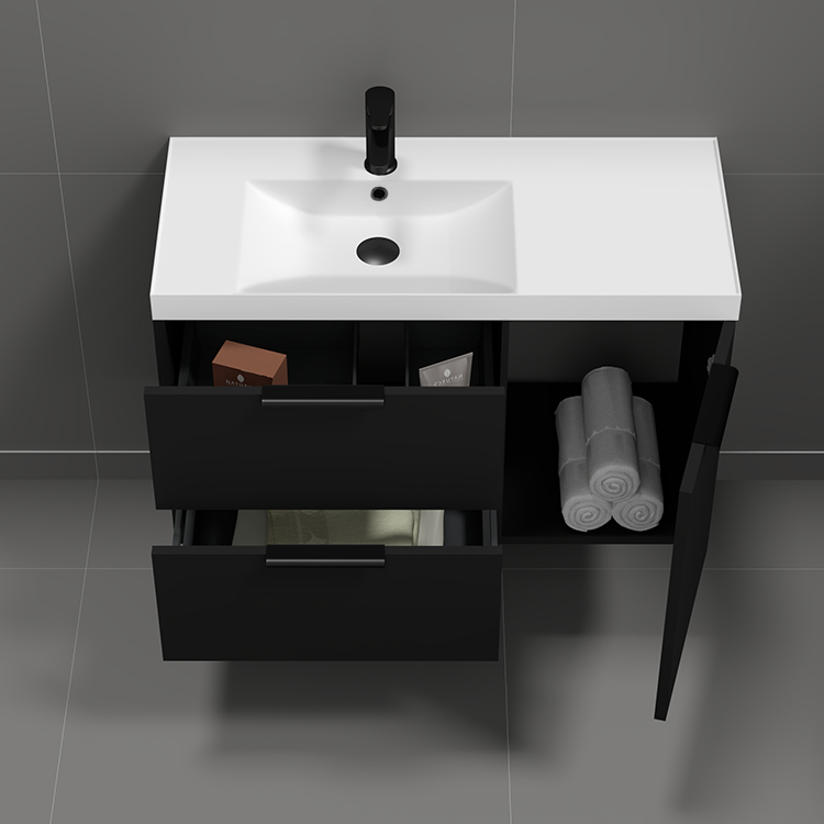 | Product Name: | 36" Black Wall Mounted Bathroom Vanity, Modern |