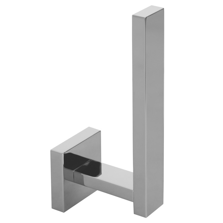 Short Description: | Modern vertical toilet paper holder made out of solid brass in a polished chrome finish. Toilet paper holder features square mounting plate and a squared vertical bar. Mounting hardware is included. |