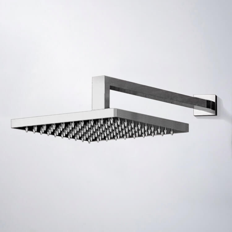Wall-Mounted 12 Inch Squared Shower Arm With Square Wall Flange.