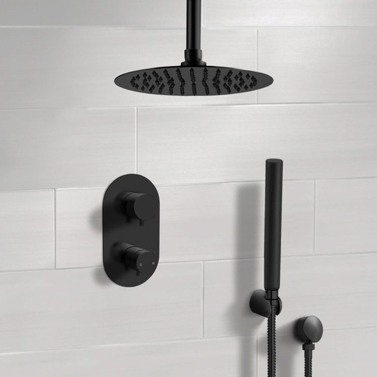 | Product Name: | Matte Black Thermostatic Ceiling Shower System with 10" Rain Shower Head and Hand Shower |