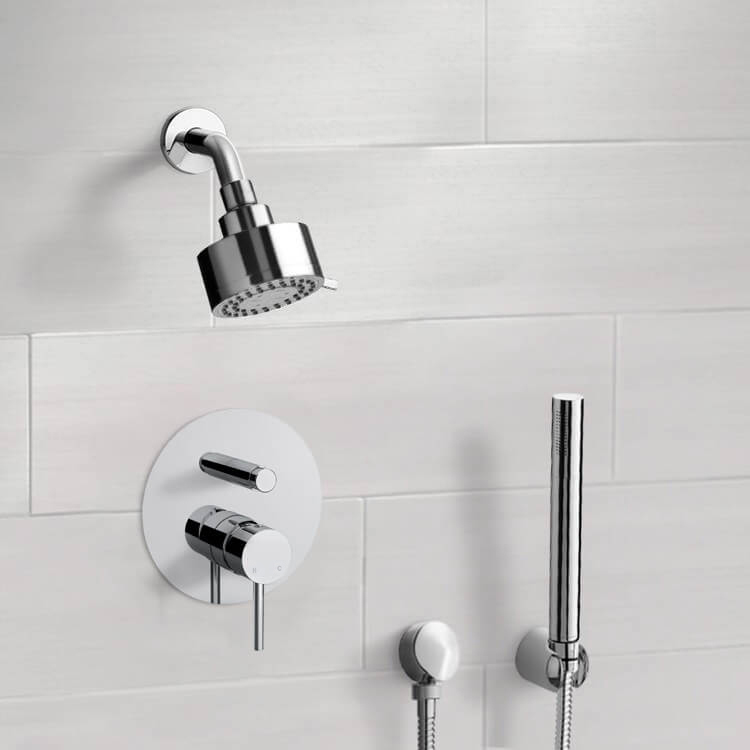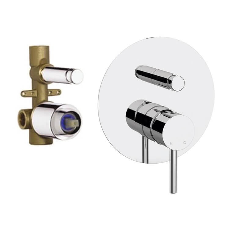 Polished Chrome Built-In Shower Diverter, Rough-In Valve Included.