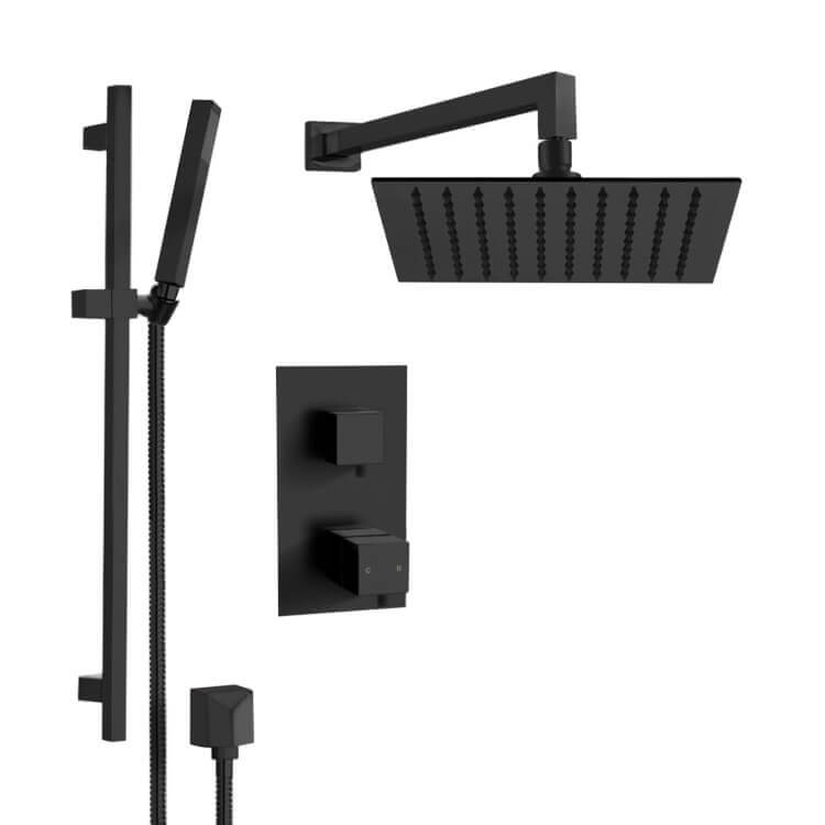 Matte Black Thermostatic Two Way Diverter, Rough-In Valve Included.