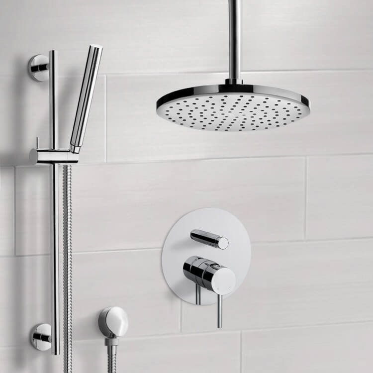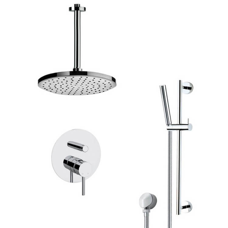 Polished Chrome Built-In Shower Diverter, Rough-In Valve Included.