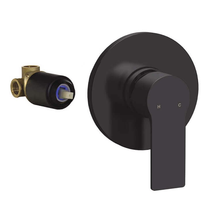 Matte Black Wall Mounted Shower Mixer, Rough-In Valve Included.