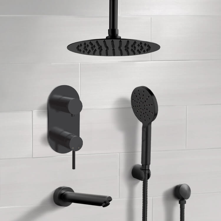 | Product Name: | Matte Black Tub and Shower System With 10" Rain Ceiling Shower Head and Hand Shower |
