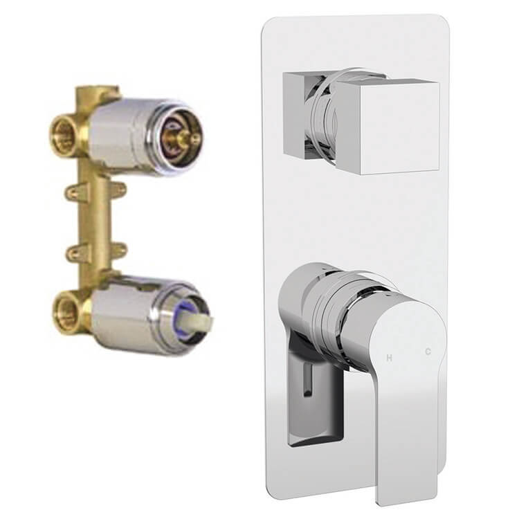 Polished Chrome Built-In Three Way Shower Diverter, Rough-In Valve Included.