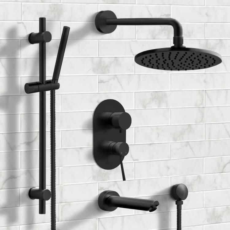 Matte Black Three Way Shower Diverter, Rough-In Valve Included.