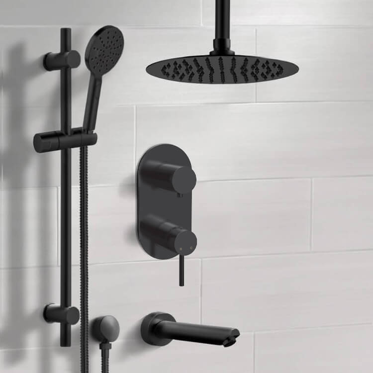 | Product Name: | Matte Black Tub and Shower Set With 10" Rain Ceiling Shower Head and Hand Shower |