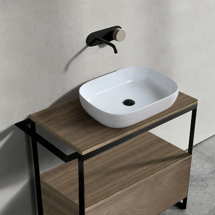 Oval White Ceramic Vessel Sink.