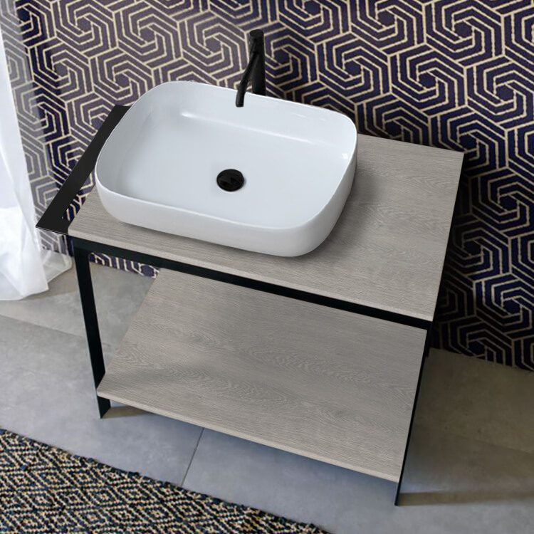 | Product Name: | Modern Console Vanity with Grey Oak Shelf, 35" |