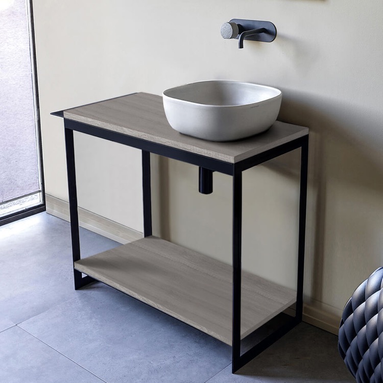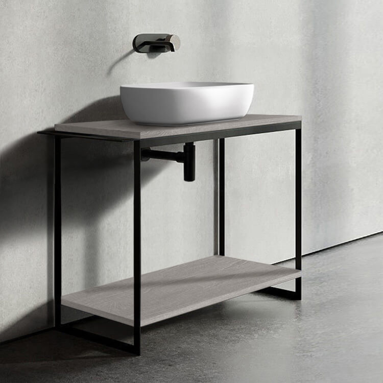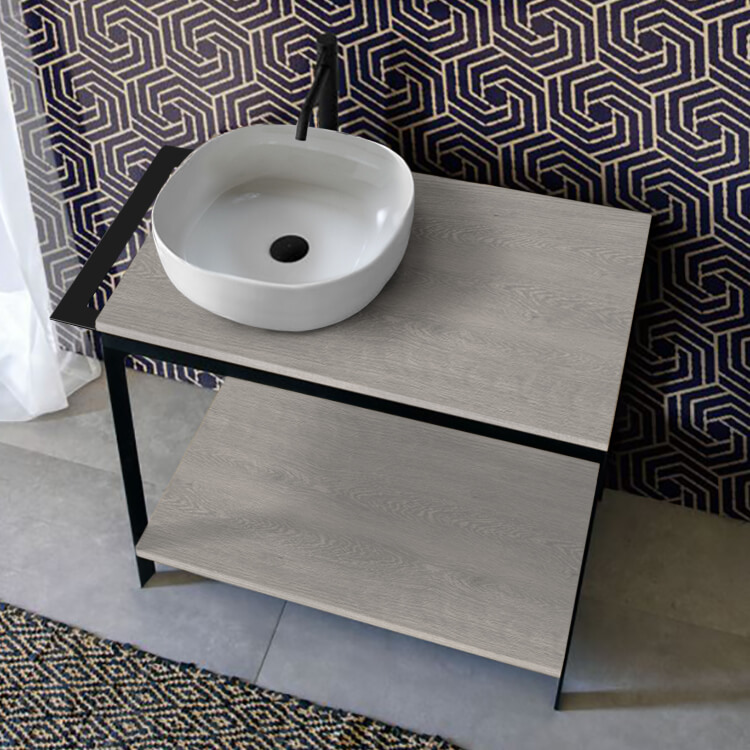 | Product Name: | Modern Console Vanity with Grey Oak Shelf, 35" |