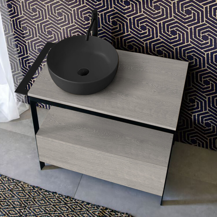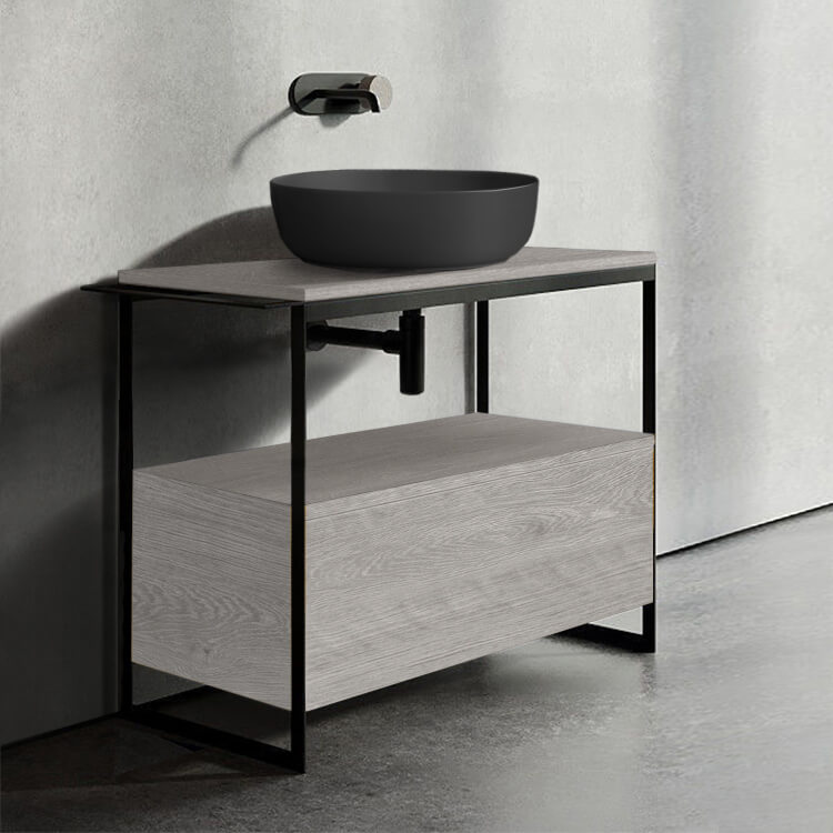 | Product Name: | Modern Console Vanity with Grey Oak Cabinet, 35" |