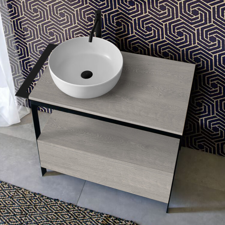 | Product Name: | Modern Console Vanity with Grey Oak Cabinet, 35" |