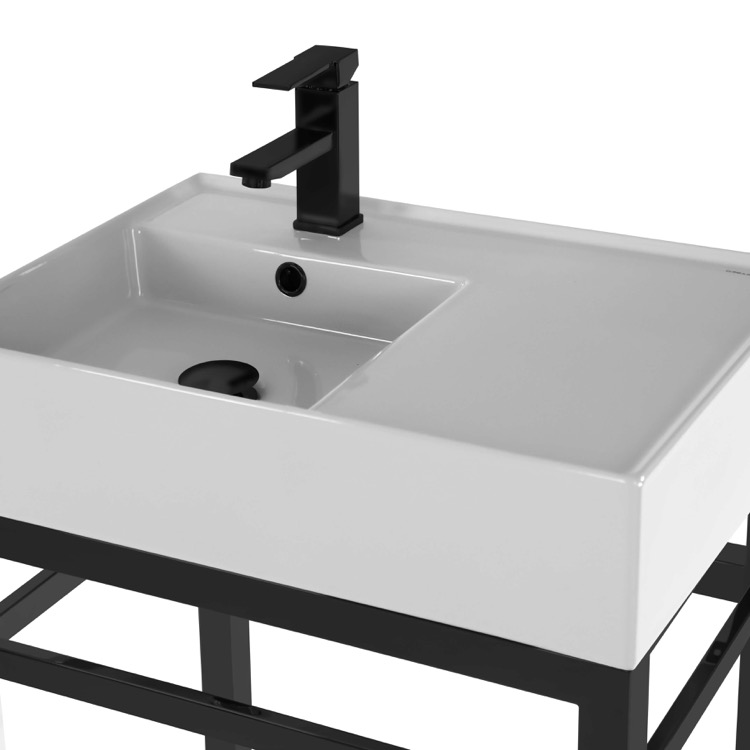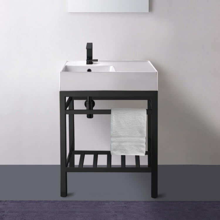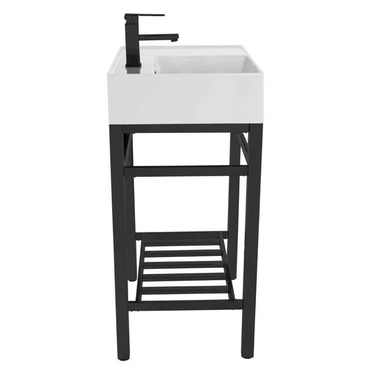 | Short Description: | Made from high quality white ceramic and stainless steel in a matte black finish, this console bathroom sink set is a perfect choice for your bathroom. Featuring right side sink counter space as well as a lower towel rack with more usable space, this solution is perfect to keep your bathroom always tidy. |