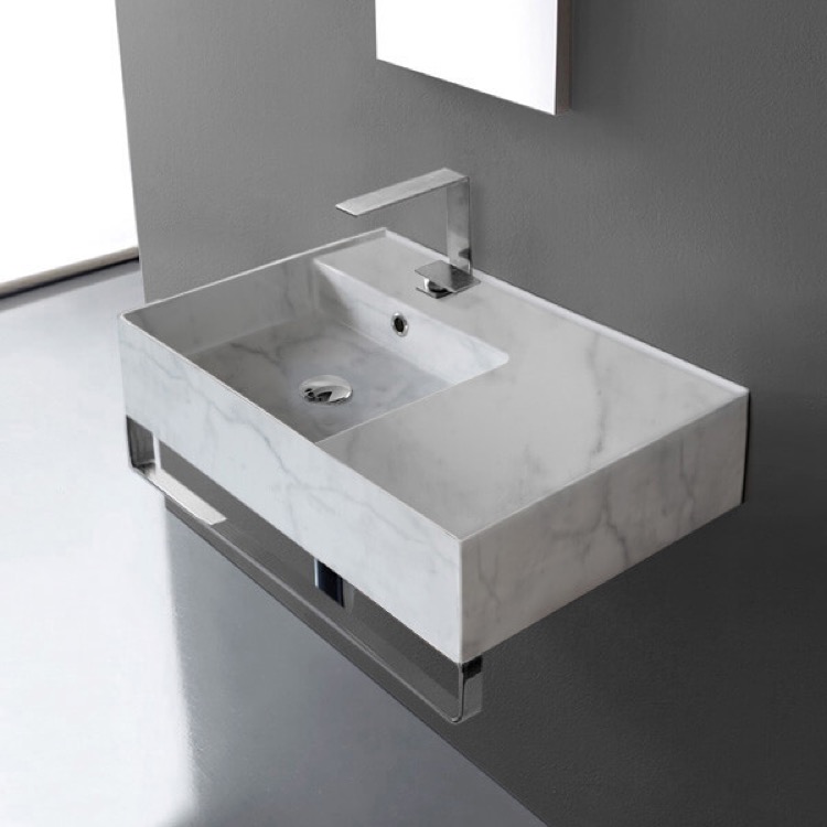 | Product Name: | Marble Design Ceramic Wall Mounted Sink With Counter Space, Towel Bar Included |