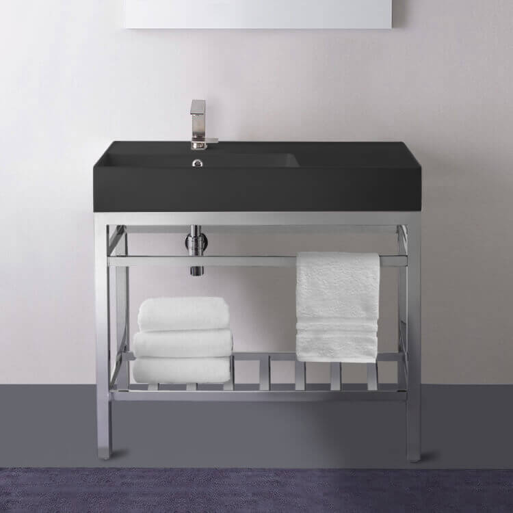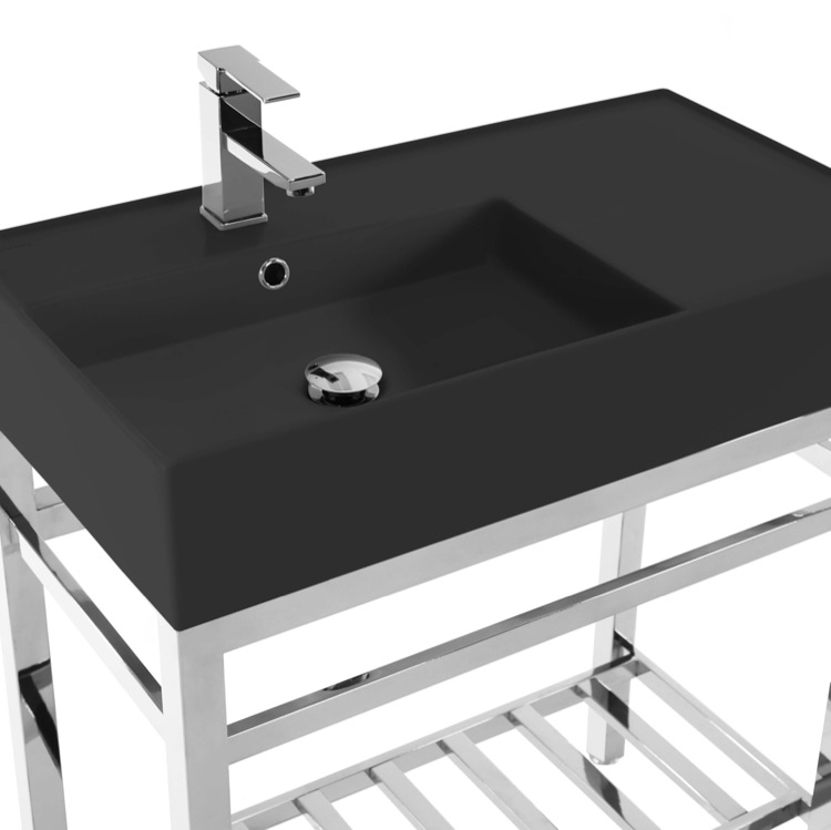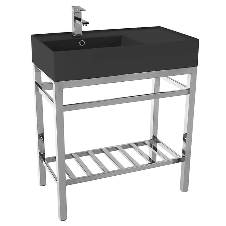 | Short Description: | Made from high quality ceramic in a matte black finish and stainless steel in a polished chrome finish, this modern console bathroom sink set is a perfect choice for your bathroom. Featuring right side sink counter space as well as a lower towel rack with more usable space, this solution is perfect to keep your bathroom always tidy. |