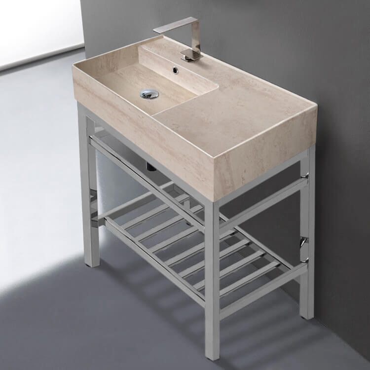 Product Name: | Modern Console Sink Vanity, Travertine Style Sink, 32" |