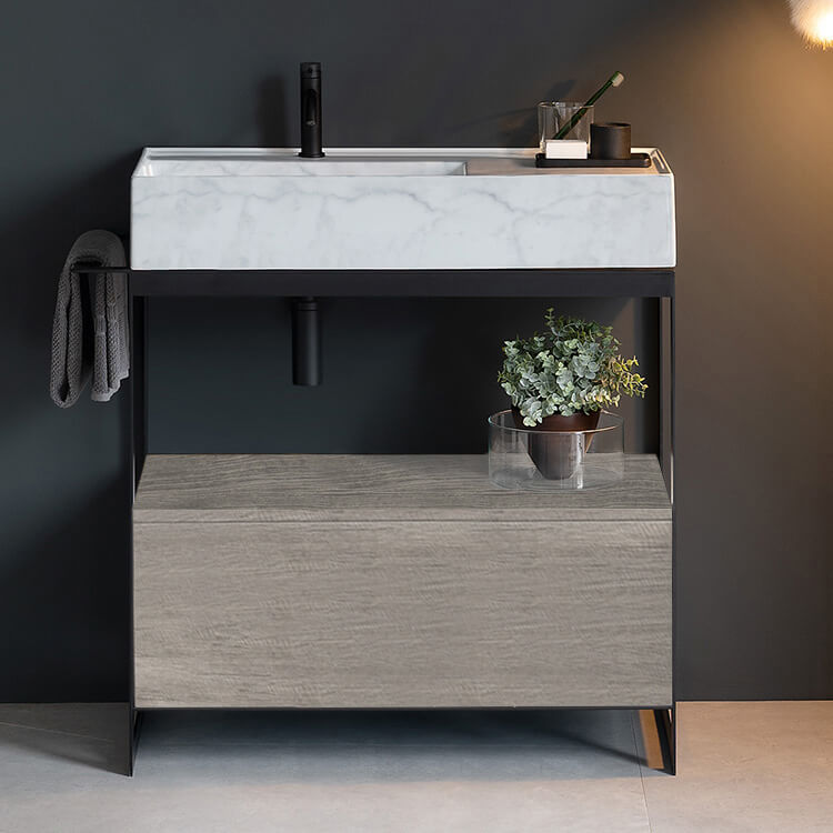 | Product Name: | Modern Console Vanity with Grey Oak Cabinet, Marble Style Sink, 35" |