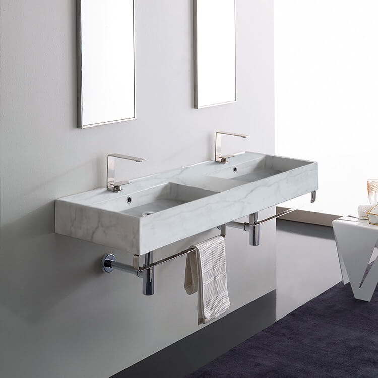 | Product Name: | Marble Design Ceramic Wall Mounted Double Sink With Polished Chrome Towel Holder |
