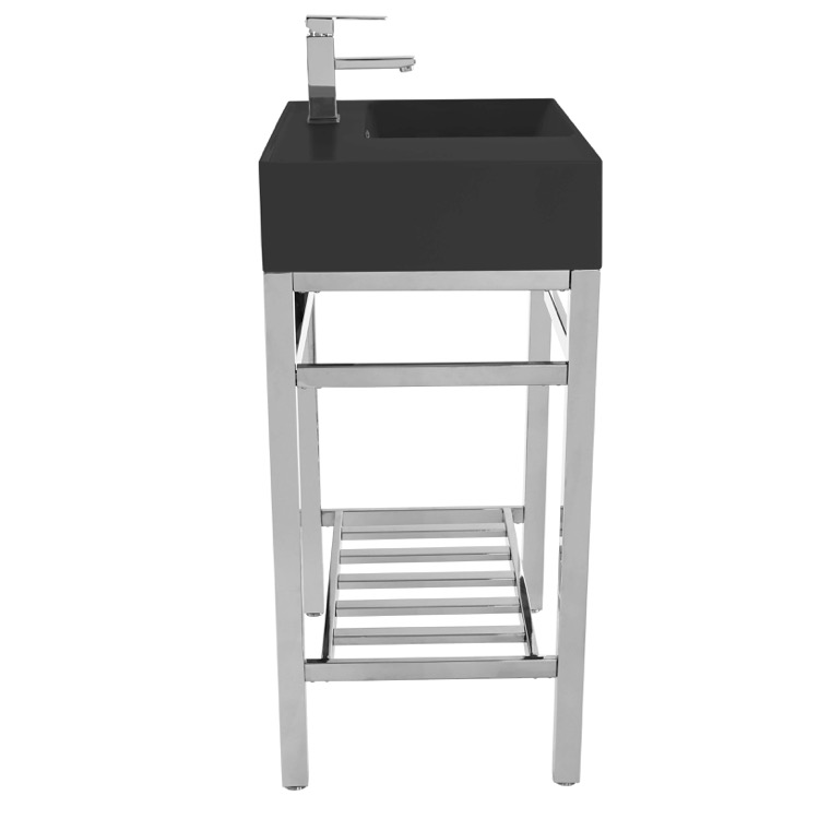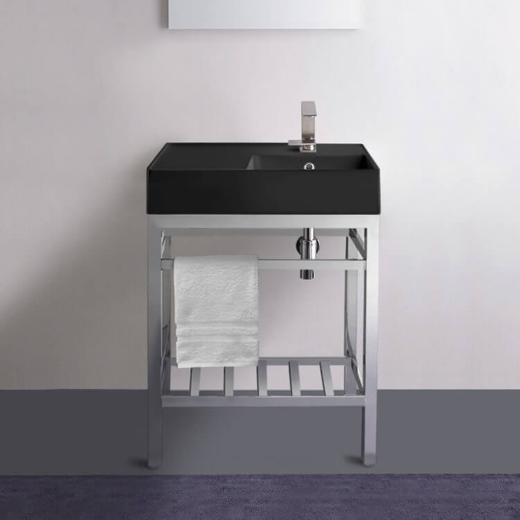 | Short Description: | Made from high quality ceramic in a matte black finish and stainless steel in a polished chrome finish, this modern console bathroom sink set is a perfect choice for your bathroom. Featuring left side sink counter space as well as a lower towel rack with more usable space, this solution is perfect to keep your bathroom always tidy. |