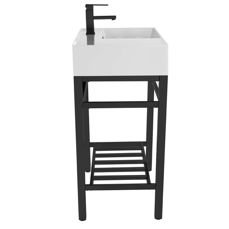 | Short Description: | Made from high quality white ceramic and stainless steel in a matte black finish, this console bathroom sink set is a perfect choice for your bathroom. Featuring left side sink counter space as well as a lower towel rack with more usable space, this solution is perfect to keep your bathroom always tidy. |
