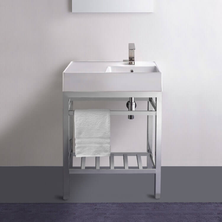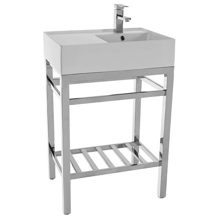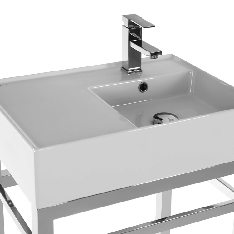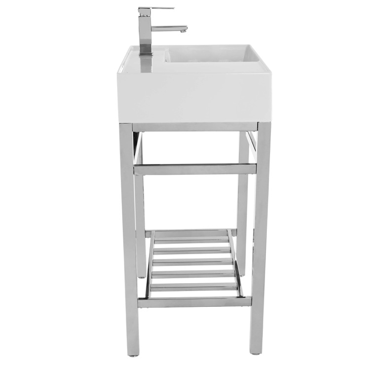 | Short Description: | Made from high quality white ceramic and stainless steel in a polished chrome finish, this console bathroom sink set is a perfect choice for your bathroom. Featuring left side sink counter space as well as a lower towel rack with more usable space, this solution is perfect to keep your bathroom always tidy. |