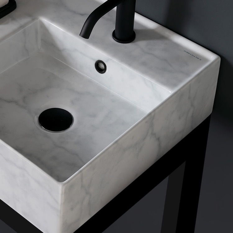| Short Description: | Made from high quality white marble design ceramic and stainless steel in a matte black finish, this console bathroom sink set is a perfect choice for your bathroom. Featuring left side sink counter space as well as a lower towel rack with more usable space, this solution is perfect to keep your bathroom always tidy. |