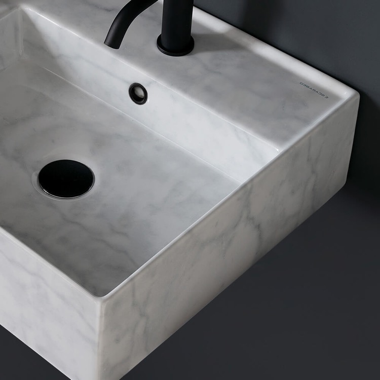Marble Design Ceramic Wall Mounted or Vessel Sink With Counter Space.