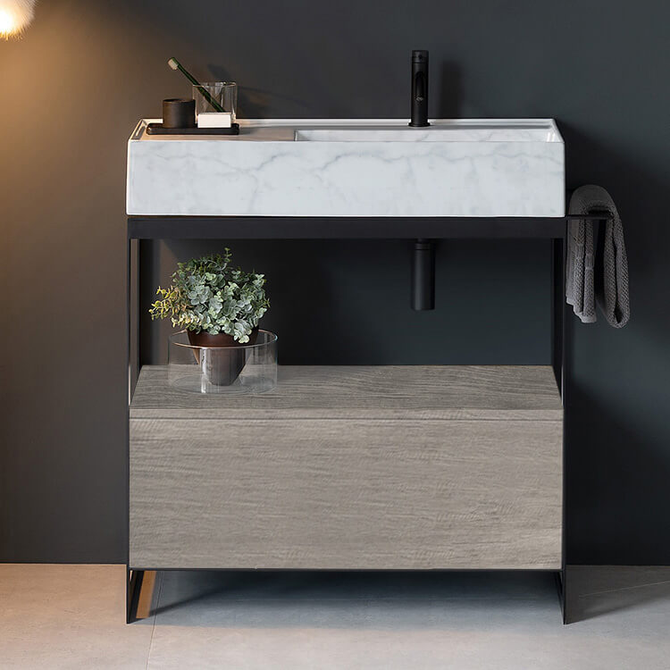 | Product Name: | Modern Console Vanity with Grey Oak Cabinet, Marble Style Sink, 35" |