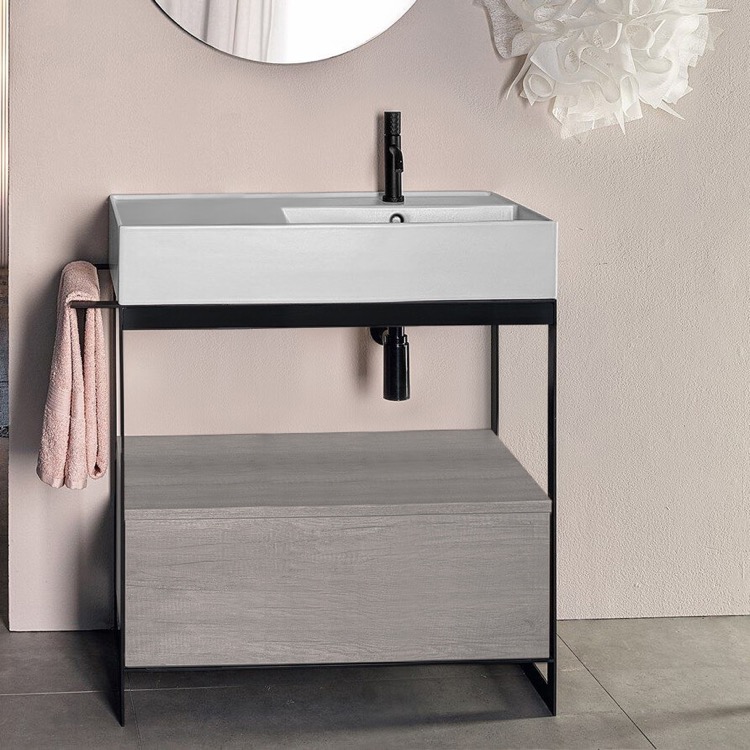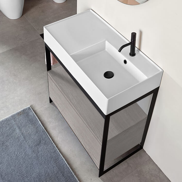 | Product Name: | Modern Console Vanity with Grey Oak Cabinet, 35" |