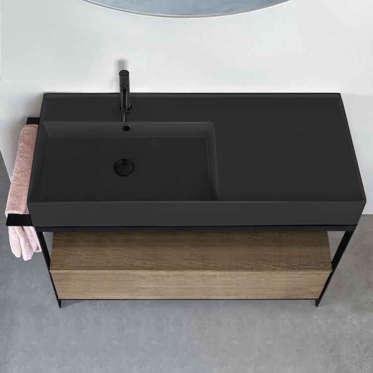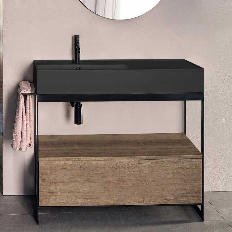 Black Wall Mounted or Vessel Sink With Counter Space.