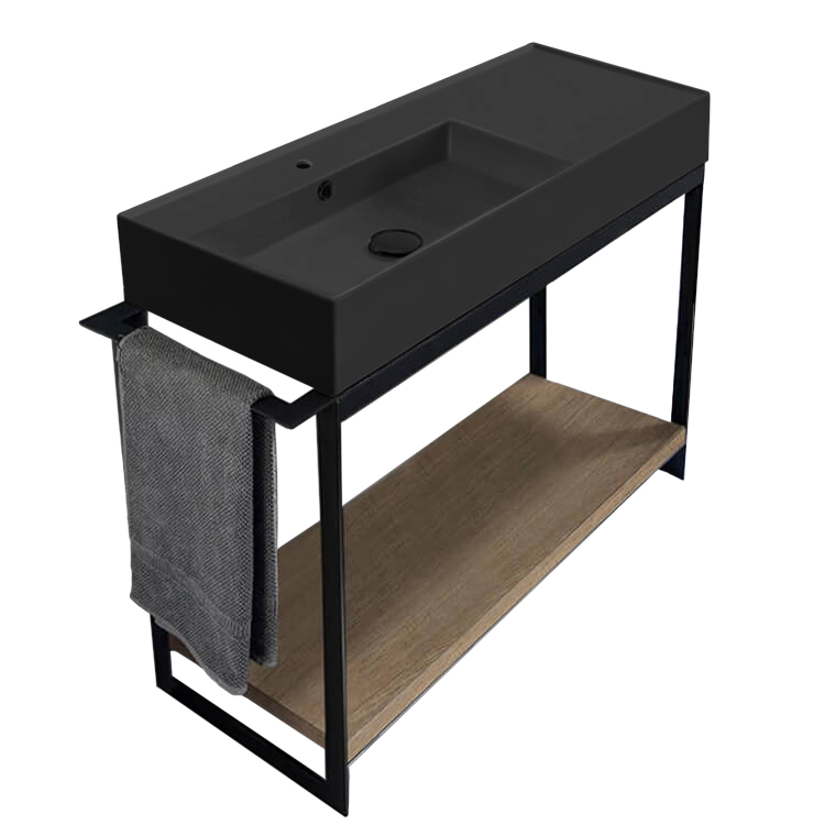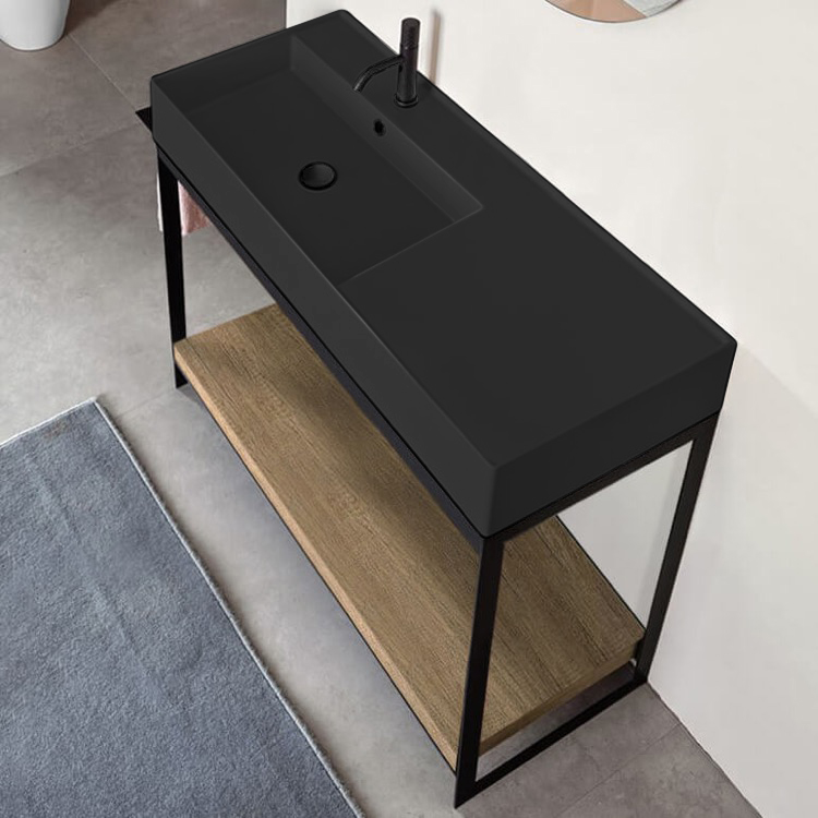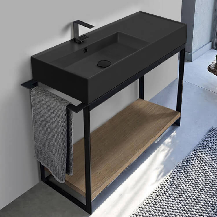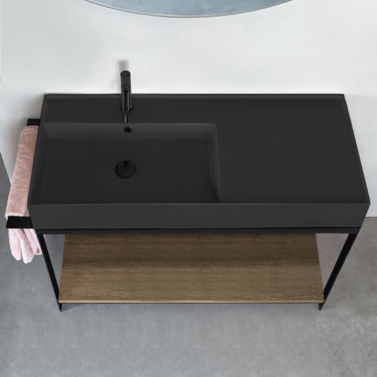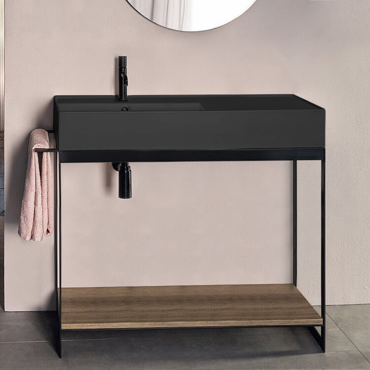 Black Wall Mounted or Vessel Sink With Counter Space.
