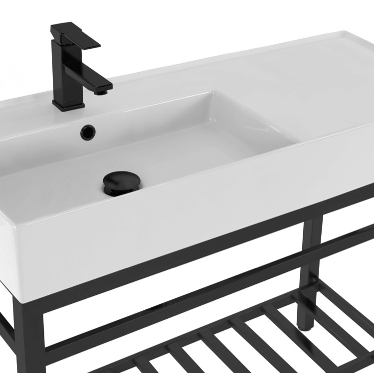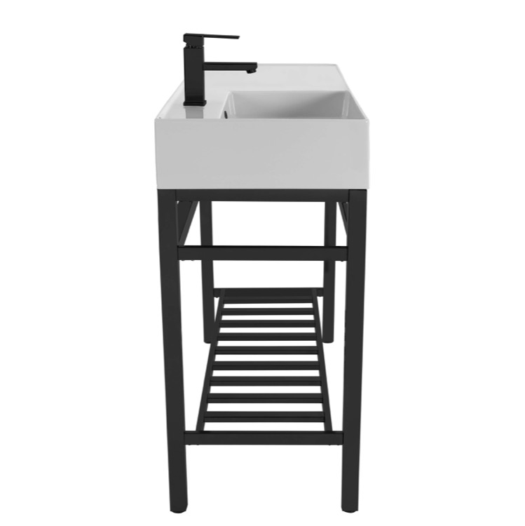| Short Description: | Made from high quality white ceramic and stainless steel in a matte black finish, this console bathroom sink set is a perfect choice for your bathroom. Featuring right side sink counter space as well as a lower towel rack with more usable space, this solution is perfect to keep your bathroom always tidy. |