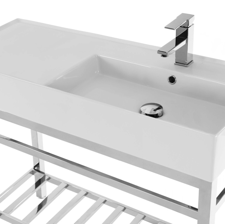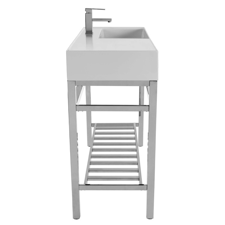 | Short Description: | Made from high quality white ceramic and stainless steel in a polished chrome finish, this console bathroom sink set is a perfect choice for your bathroom. Featuring left side sink counter space as well as a lower towel rack with more usable space, this solution is perfect to keep your bathroom always tidy. |