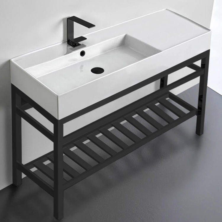 Rectangular Ceramic Wall Mounted or Vessel Sink With Counter Space.