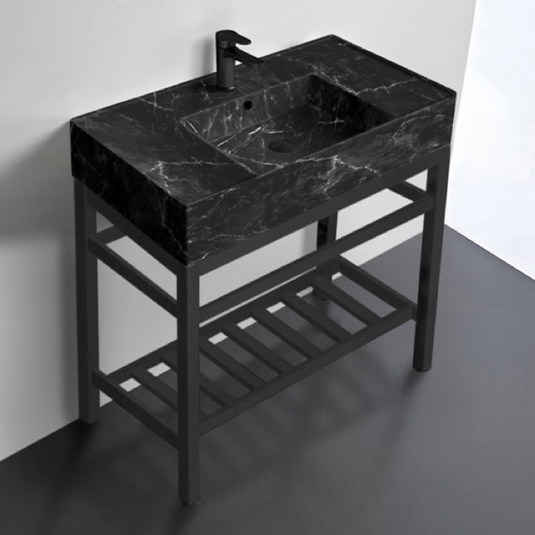 | Product Name: | Modern Console Sink Vanity, Black Marble Style Sink, 32" |
