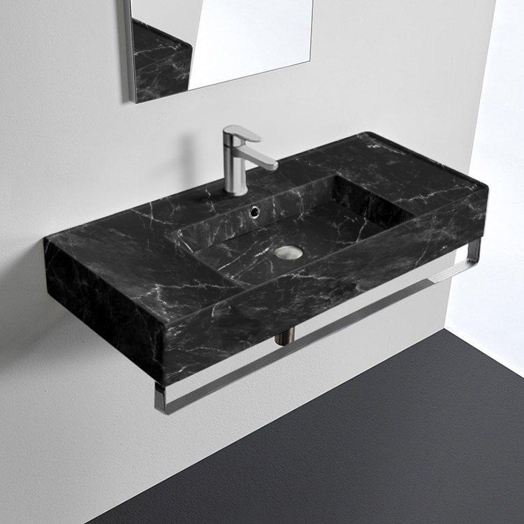 | Product Name: | Black Marble Design Wall Mounted Sink With Black Towel Bar |