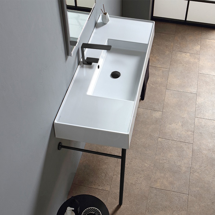 Rectangular Ceramic Wall Mounted or Vessel Sink With Counter Space.