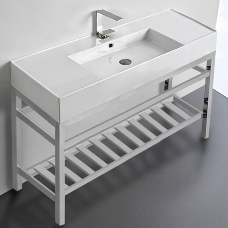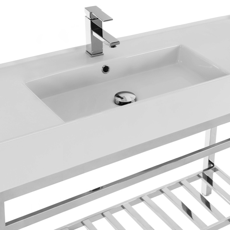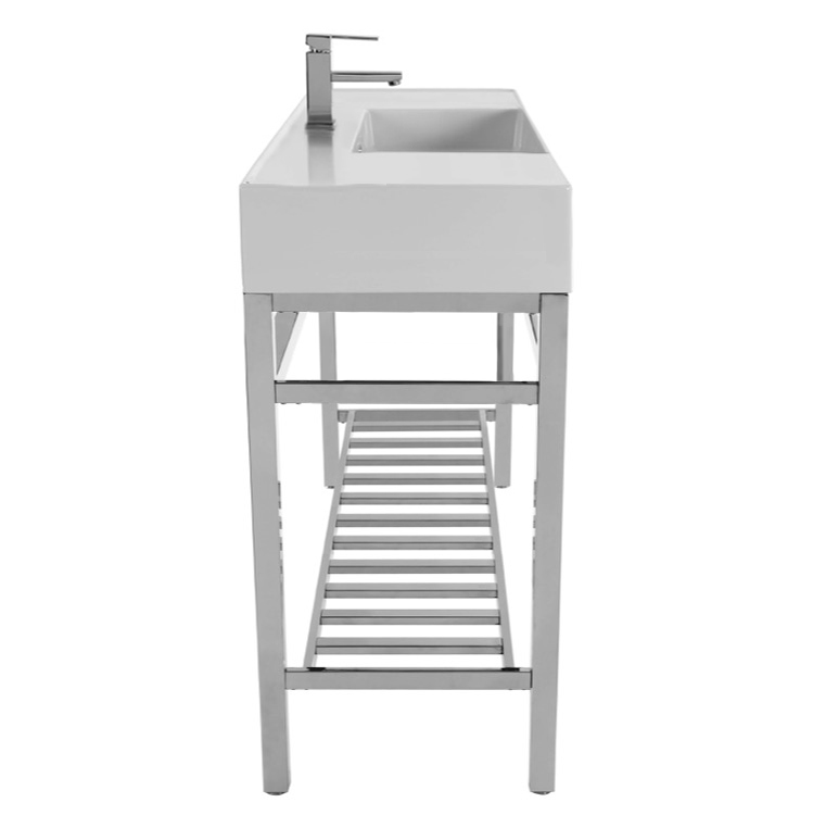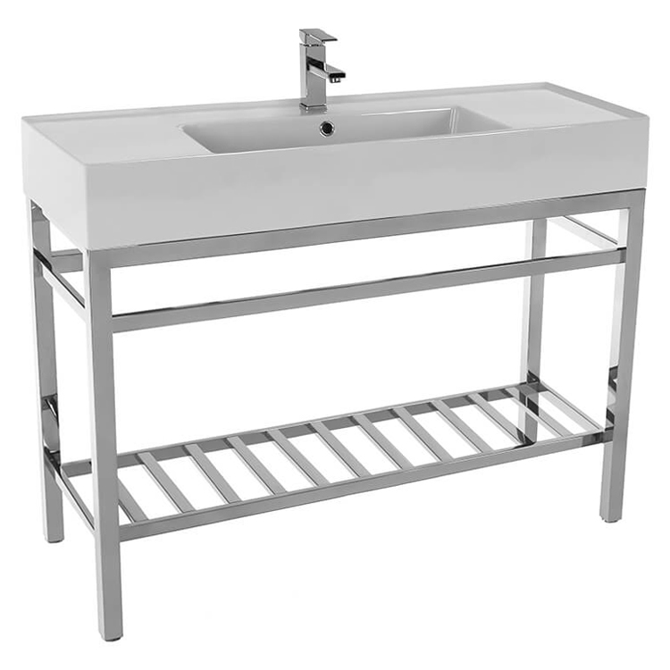 Rectangular Ceramic Wall Mounted or Vessel Sink With Counter Space.