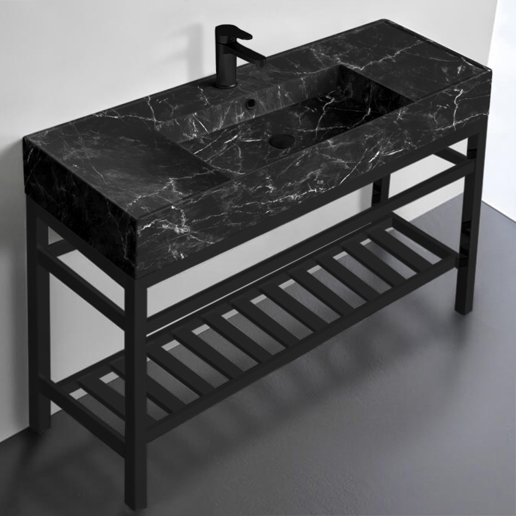 Product Name: | Modern Console Sink Vanity, Black Marble Style Sink, 48" |