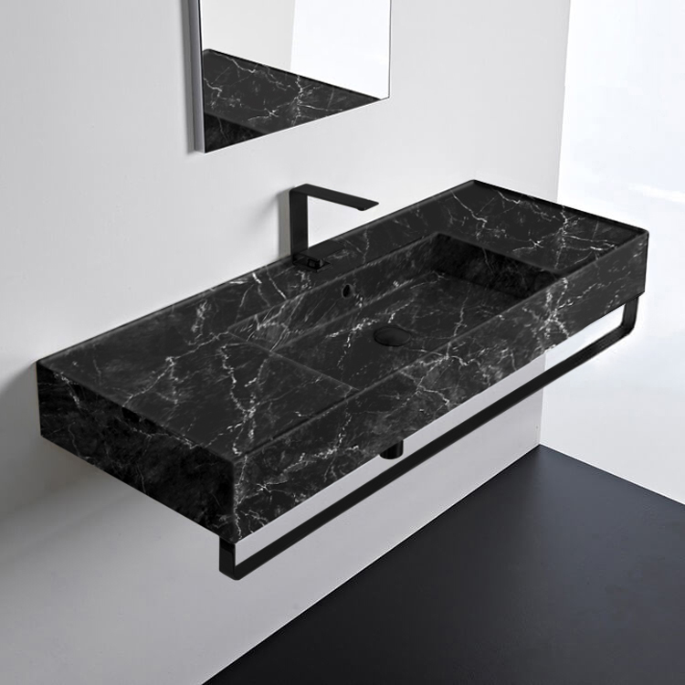 Product Name: | Wall Mounted Black Marble Design Ceramic Sink With Black Marble Design Towel Bar |