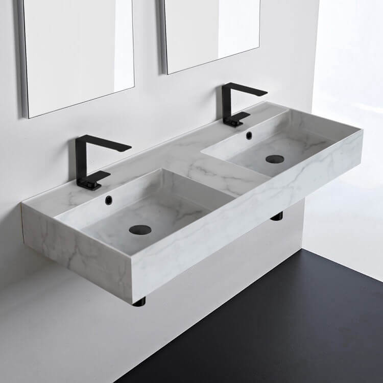 | Short Description: | Rectangular double bathroom sink made from high quality white marble design ceramic. Part of Scarabeo's Teorema 2.0 collection, this sink can be either used as a wall-mounted or vessel application and includes overflow. Perfect for the contemporary style bathrooms. |