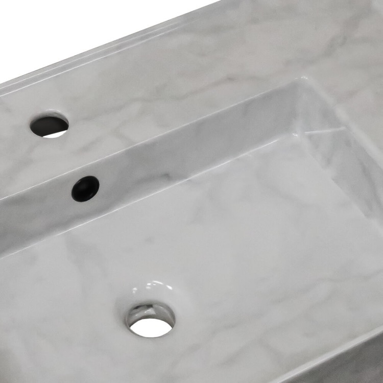 Marble Design Ceramic Wall Mounted or Vessel Double Sink With Counter Space.
