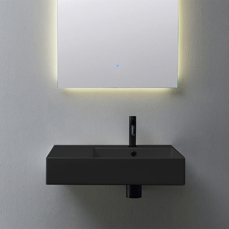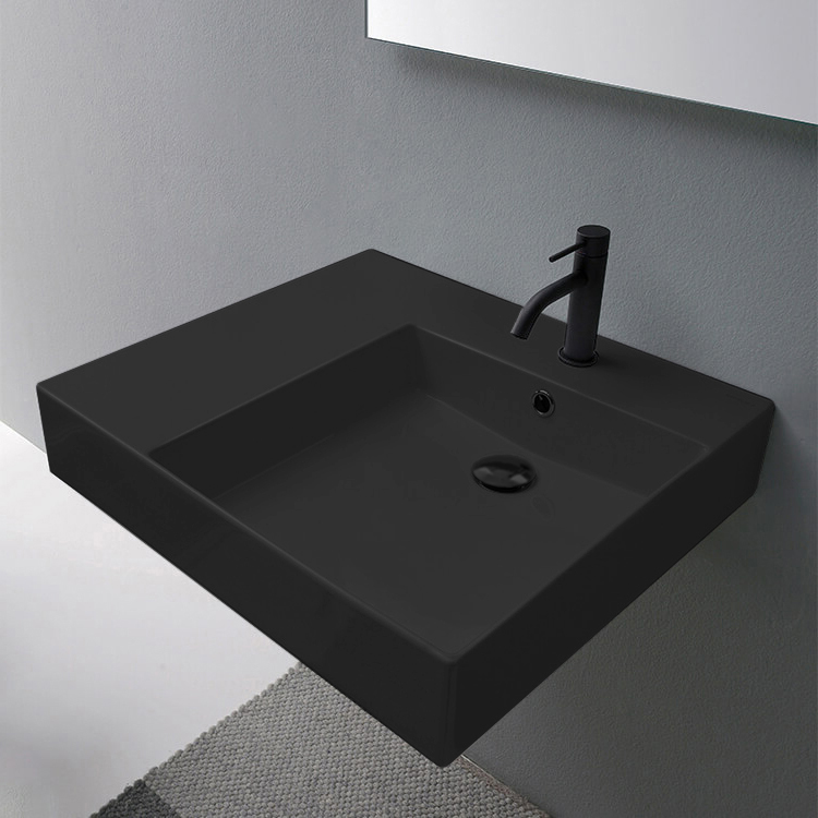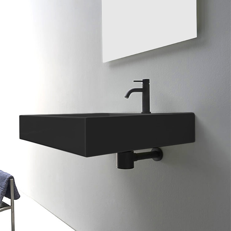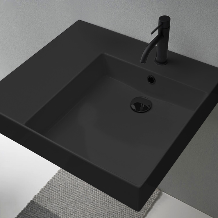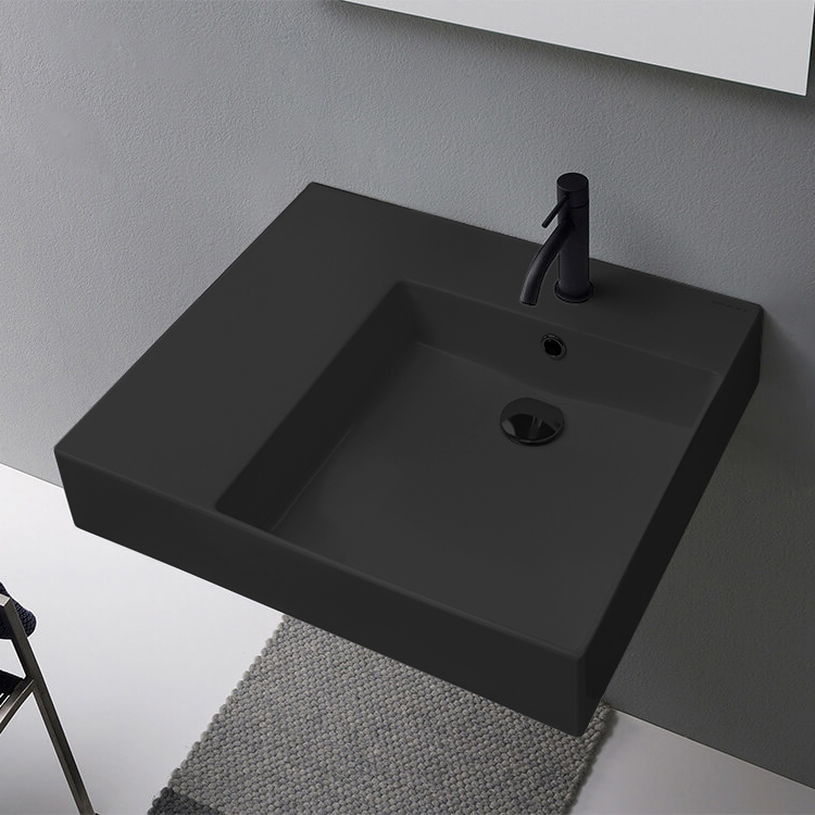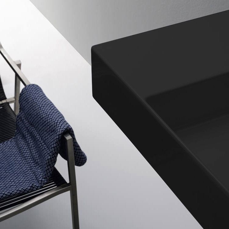 Product Name: | Black Ceramic Wall Mounted or Vessel Sink With Counter Space |