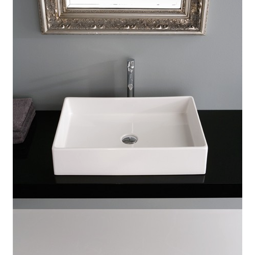 Short Description: | Modern design rectangular white ceramic sink with no hole and all sides glazed. Sleek vessel bathroom sink without overflow. Trendy rectangular ceramic sink for the bathroom counter top. Ceramic sink also fits nicely on a counter. This porcelain sink is 23.6" x 15.2" and weighs approximately 31 pounds. From the Teorema Collection. Sink is made in Italy by Scarabeo. Scarabeo offers a 5 year limited warranty on all of its products. |